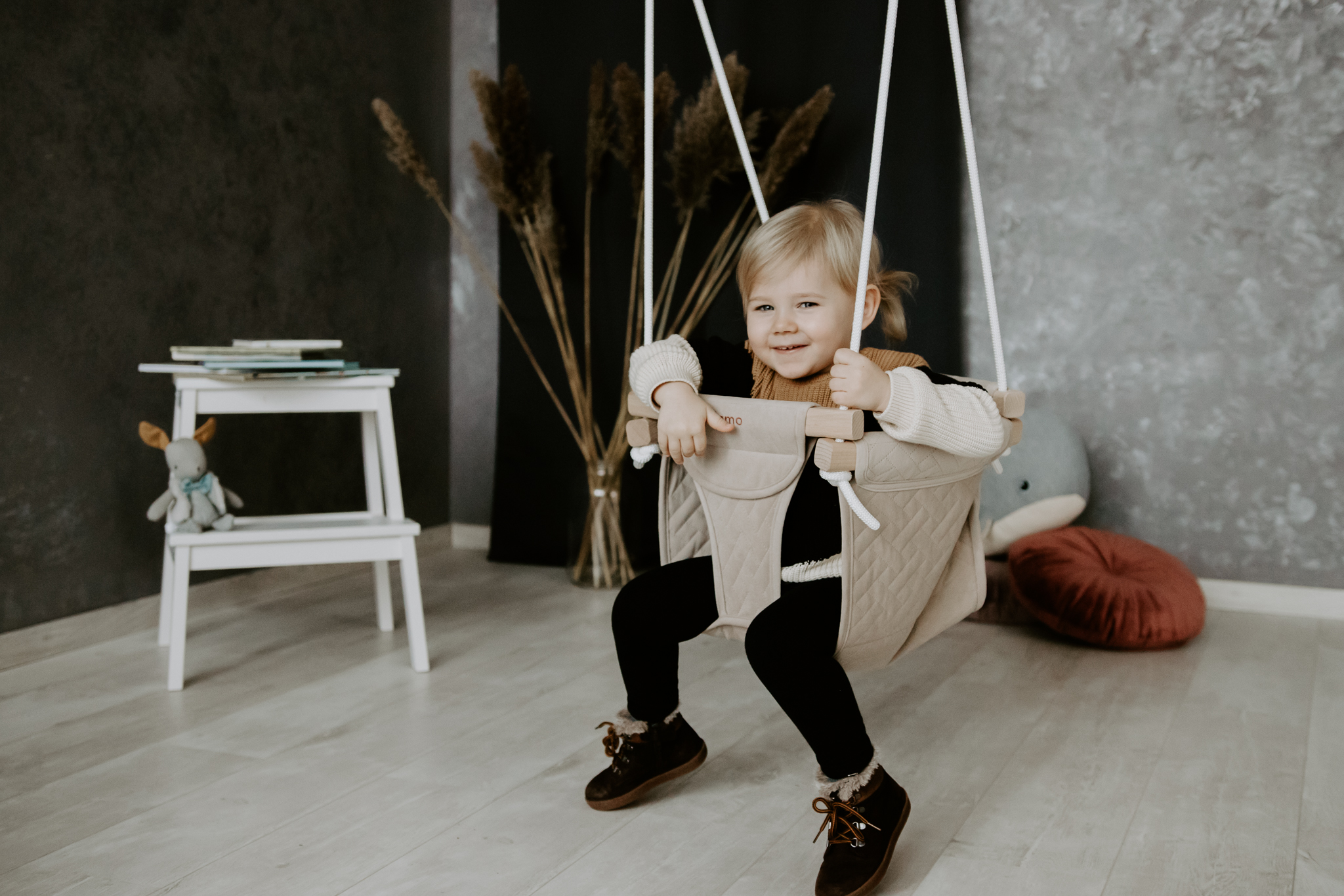 Hojdačka bole primárne určená na používanie v interiéri ale vďaka svojmu vysoko odolnému poťahu je možné ju používať aj v exteriéri.